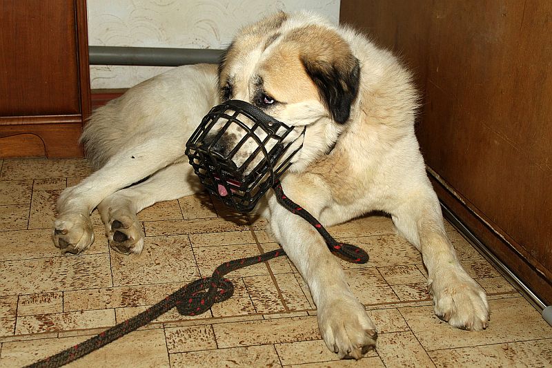 Dvouletý středoasiat Árny sem přišel jako rozmazlený pes s extrémní majetnickou agresí. K fenkám je přátelský.