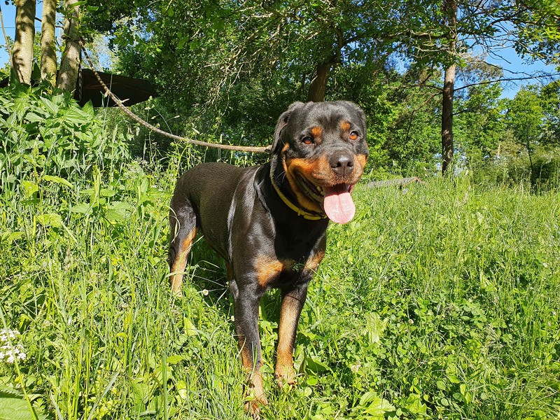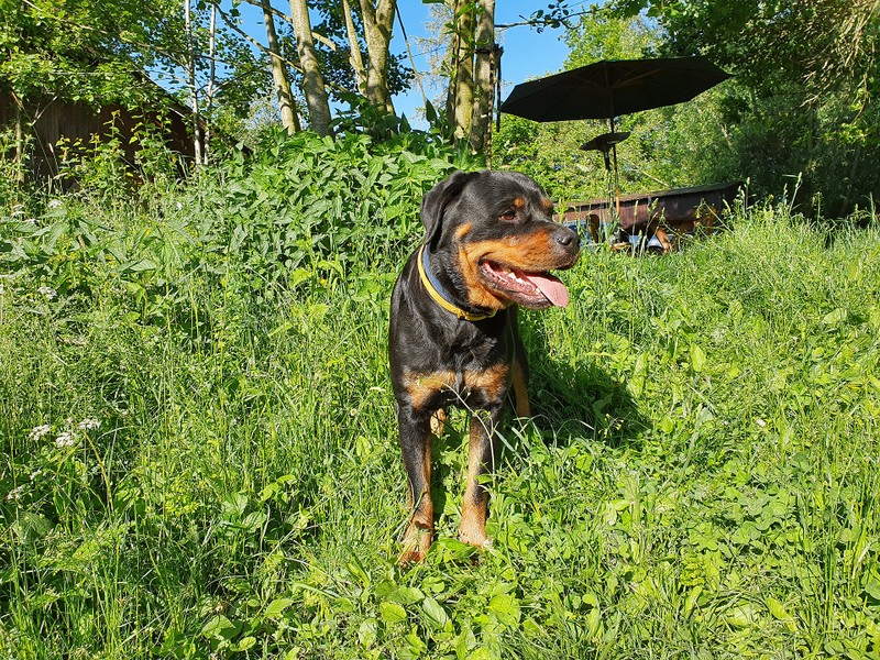 Jessi je čtyřletá fenka rotvajlera s mimořádnou povahou a hledá nový domov. Jessi měla být utracena, jelikož si s bývalou paničkou vůbec nerozuměly. Přitom je vyrovnaná, nebojácná, inteligentní, intuitivně cítí, co se po ní chce, umí se vyjadřovat srozumitelně a přímo. Při správném zadání ochotně spolupracuje, je přizpůsobivá v reálném čase a ovladatelná v podstatě jen myšlenkou nebo vzájemnou výměnou pohledu. Dlouho jsem tady neměl tak luxusní povahu, kterou znám jen u svých psích chůviček. Se psy se umí také domluvit, kamarádí se hlavně s velkými samci, s nevyrovnanými hysteriky se však bavit nebude. Doporučuji ji spíše někomu se zkušenostmi s opravdovým, vysoce inteligentním rotvajlerem. Je zvyklá v domě se zahradou a na občasný pobyt v kotci.