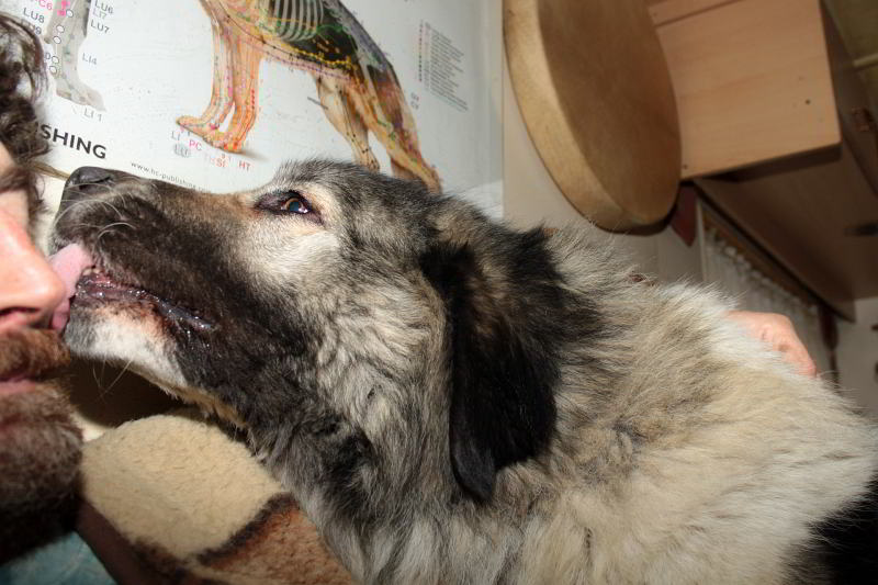 Máňa je sedmiletá, velice přátelská fenka kavkazana. Je pohodová, velice mazlivá, ke svým velice přátelská, na cizí štěká. Miluje pozornost, mazlení a společnost člověka. Se psy vychází dobře, s velkými si ráda hraje. Je vhodná na mazlení, ne do kotce. Hodí se k důchodcům nebo do početné rodiny i s malými dětmi. Je velice poslušná, něžná a jemná vtěrka, které se jen tak nezbavíte a bude vám neustále překážet pod nohami, abyste ji pomazlili.