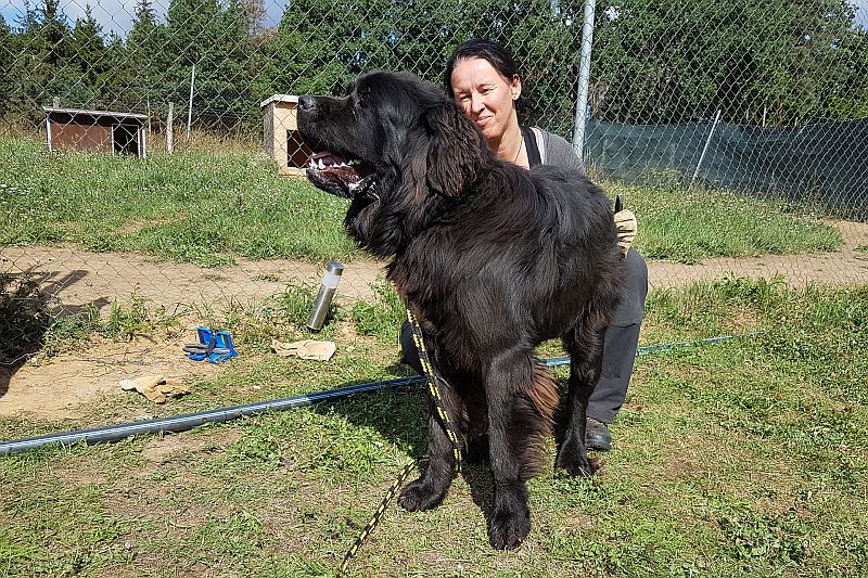 Třináctiměsíční pejsek novofundlanda jménem Leon našel nový domov v rodině u lidí se zkušenostmi s funďáčky.
