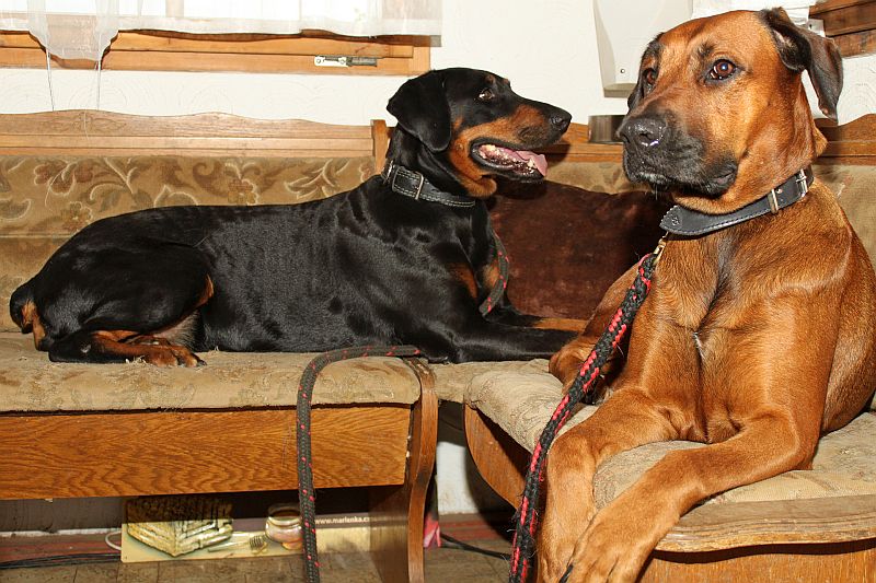Čtyřletá kříženka Malina se k nám dostala i se svou těžce nemocnou matkou Miou(na fotce vlevo), která prohrála svůj boj s rakovinou. Matka byla kříženec rotvajlera s dobrmanem, otec byl boxer. Malina je velice přátelská k lidem a dětem, je zvyklá na psy a oslíky. Je vhodná do bytu.