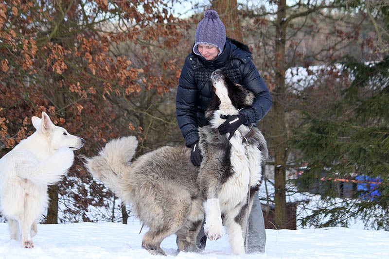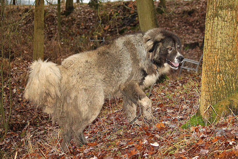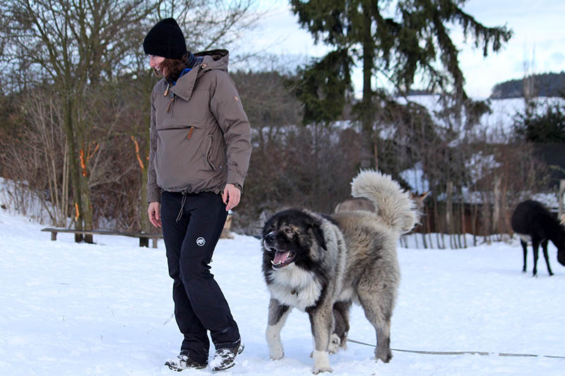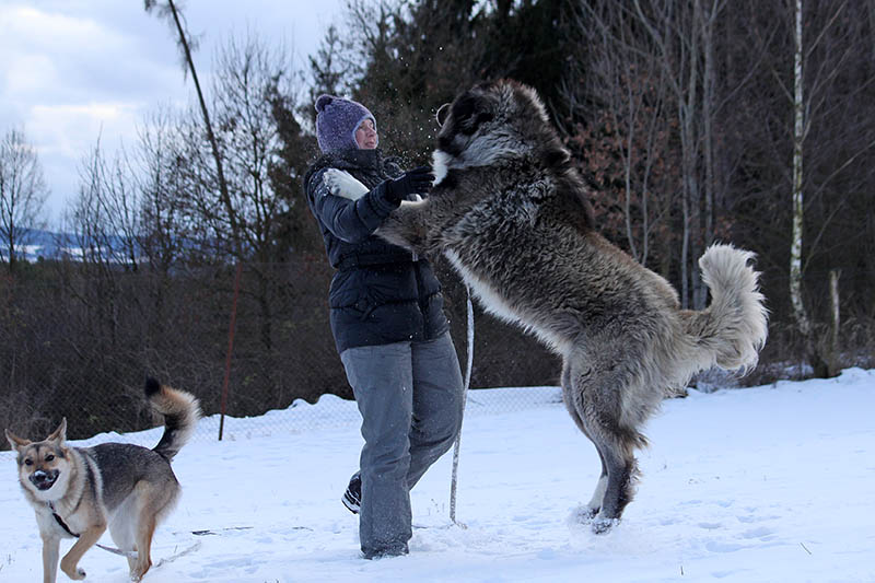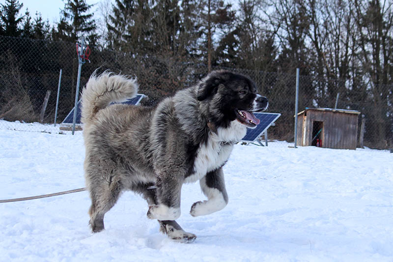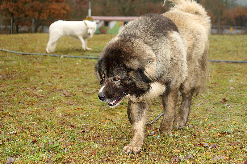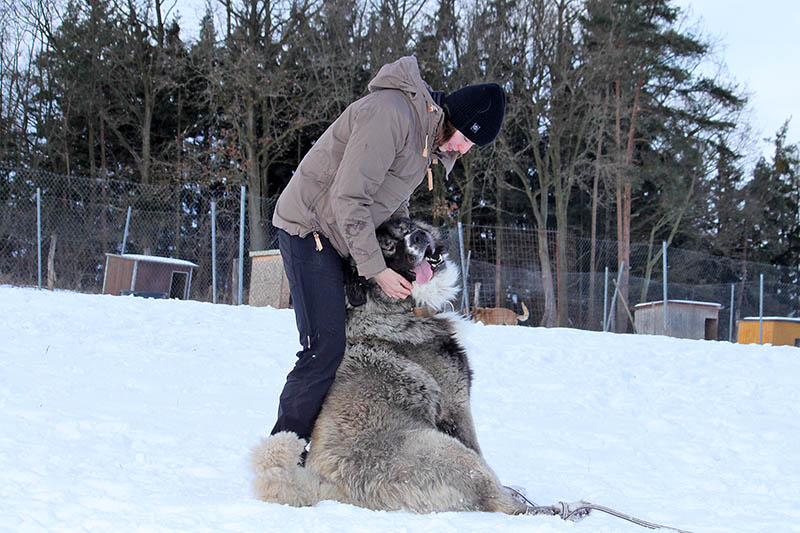 Mazlík je statný tříletý kavkazan. Byl na firmě, kde pro něho ztratili využití, neměl ani svého pána, který by se mu plně věnoval a zaměstnanci se ho tam začali bát. Je opravdu Mazlík, jen je v některých situacích malinko nejistý a pak si trochu zavrčí. Při amatérském drilu by se ohradil jako většina kavkazanů, ale je jemný a přátelský, umí se dohodnout. S fenkami je velký kamarád, moje štěně si od sebe držel dál, ale jen respektem. Sice ho nedoporučujeme úplným začátečníkům, ale ti, co kazoše znají, se s ním domluví poměrně snadno.