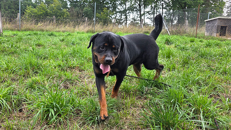 Rasty je tříletý rotwajler. Cizím lidem nevěří, je temperamentní, dobře ovladatelný, zvyklý na zahradě, výborně hlídá. S fenkami se kamarádí, psy dokáže tolerovat. Potřebuje spolehlivé a srozumitelné vedení. V případě zájmu nám nepište, volejte na číslo našeho mikroazylu.