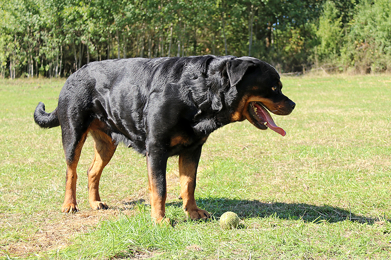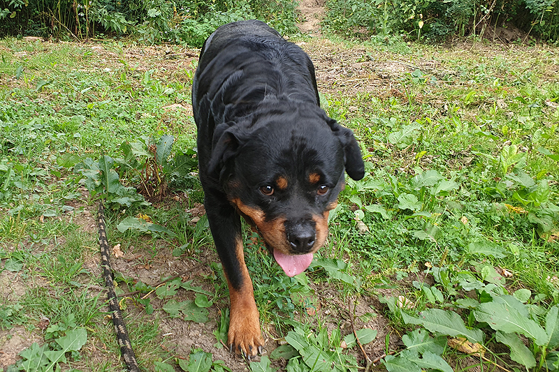 je čtyřletá fenka rotvajlera a hledá nový domov. Je zvyklá venku na zahradě s přístupem do domu. Je naprosto lidumilná, mazlivá, vhodná k dětem i starším lidem. Na jiné psy si začíná zvykat, bojí se jich. Je hravá, nejraději má tenisáky.